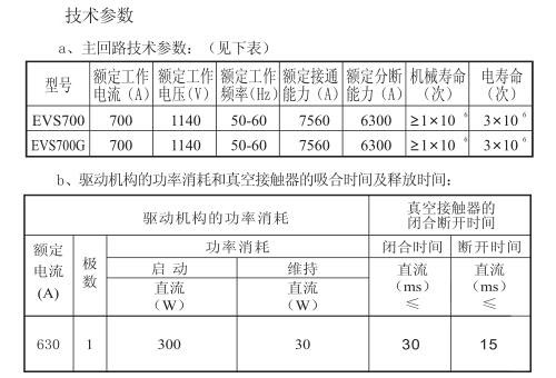 說明:EVS系列低壓真空接觸器,具有接通、分斷能力大,電氣和機械壽命長,在惡劣條件下工作可靠性高等優點。額定工作電壓1140V、額定電流700A。