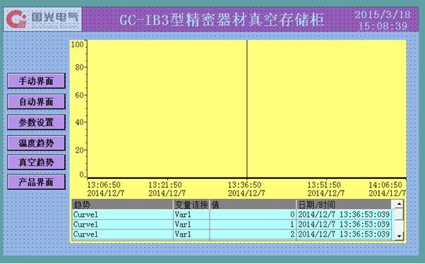 數據查詢系統分為真空趨勢、溫度趨勢及濕度趨勢,具體如下