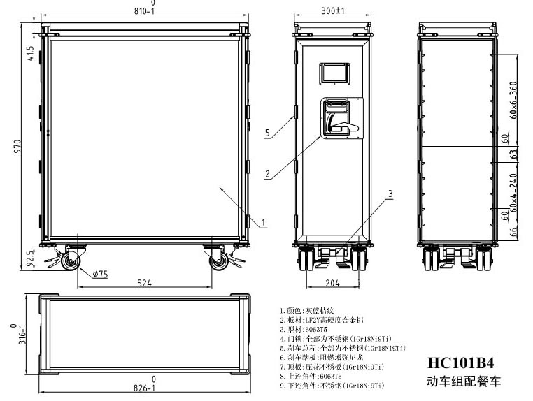 說明:HC101B3和HC101B4是專為火車,動車組配置的進餐服務推車。