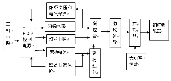 2)采用三相全波整流得到陽極高壓,陽極回路采用多種保護電路措施,PLC控制實現陽極電流過流保護,磁控管、電源和線包保護,確保測試電源系統穩定可靠工作。