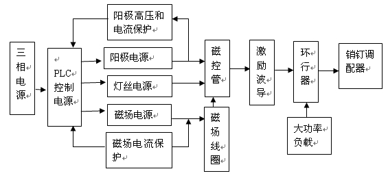 25kW/915MHz大功率微波源,采用30kW/915MHz磁控管及標準WR975波導輸出接口;微波功率2.5~25kW連續可調。微波傳輸系統根據要求由環行器、水負載、以及饋入波導組成。